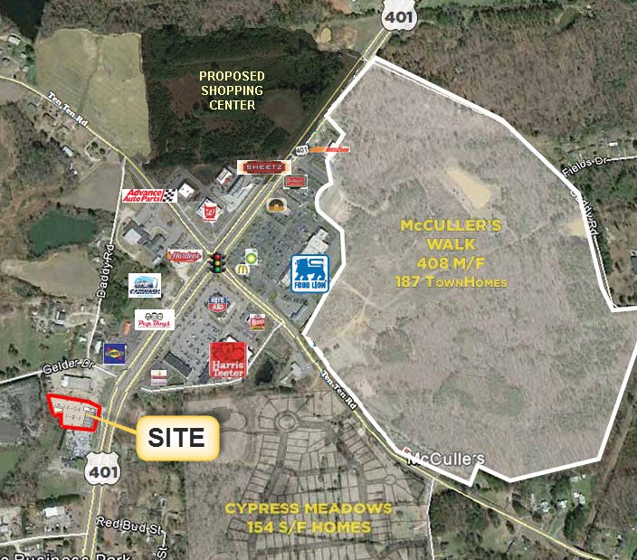 The average daily traffic (AADT) count is in excess of 34,000 and DOT estimates this volume will grow to 58,000 upon completion of the approved Orange Route for I-540 Extension. The interchange with Hwy 401 is less than 1 mile from the site.